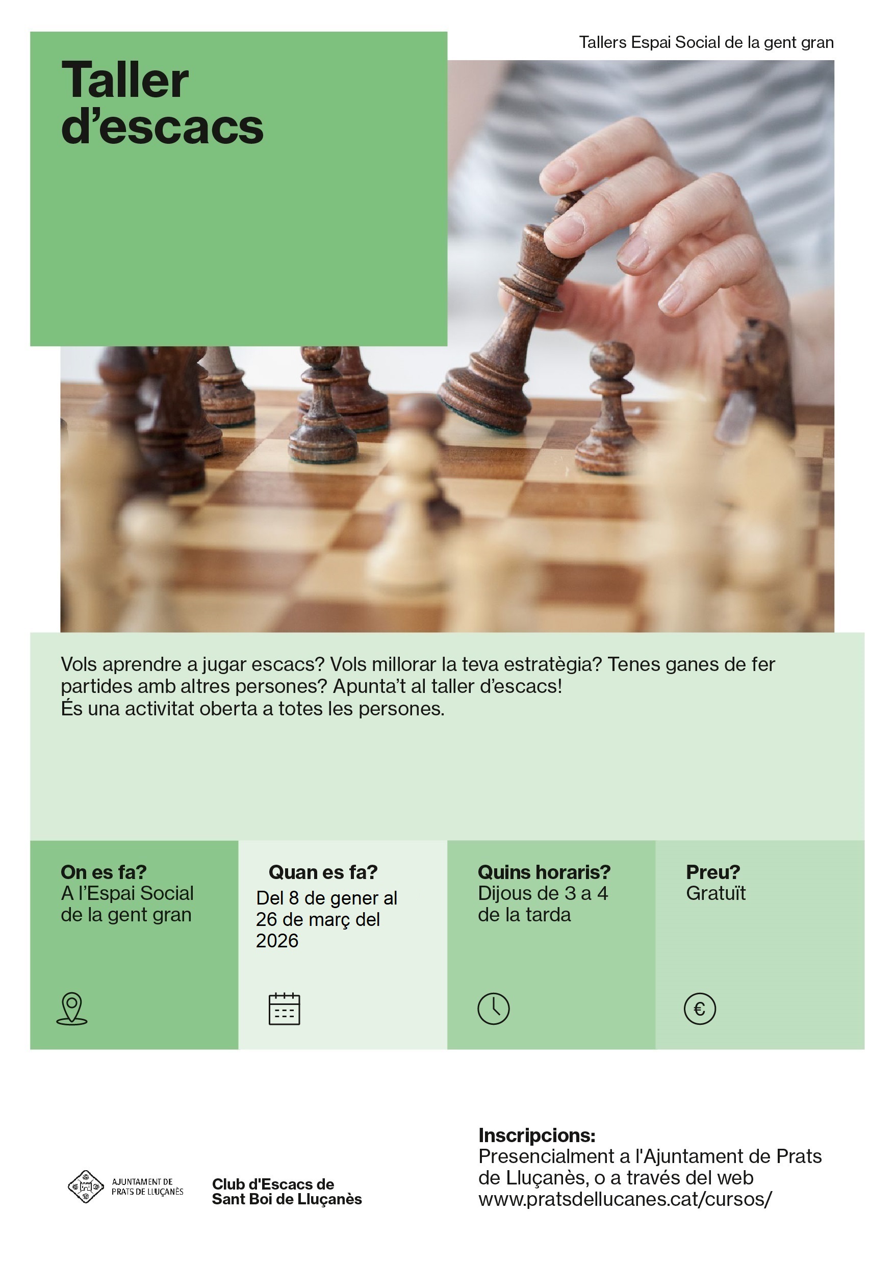 Inscripcions: Ajuntament de Prats de Lluçanès o al web de l’Ajuntament de Prats de Lluçanès a: https://pratsdellucanes.cat/cursos/