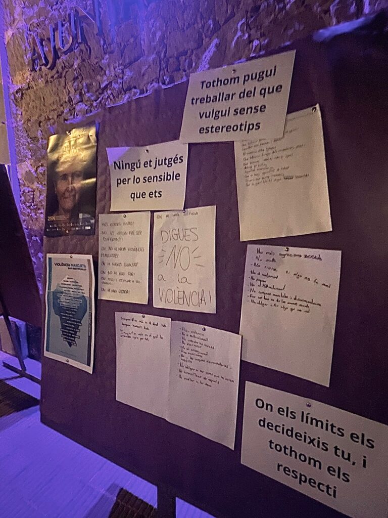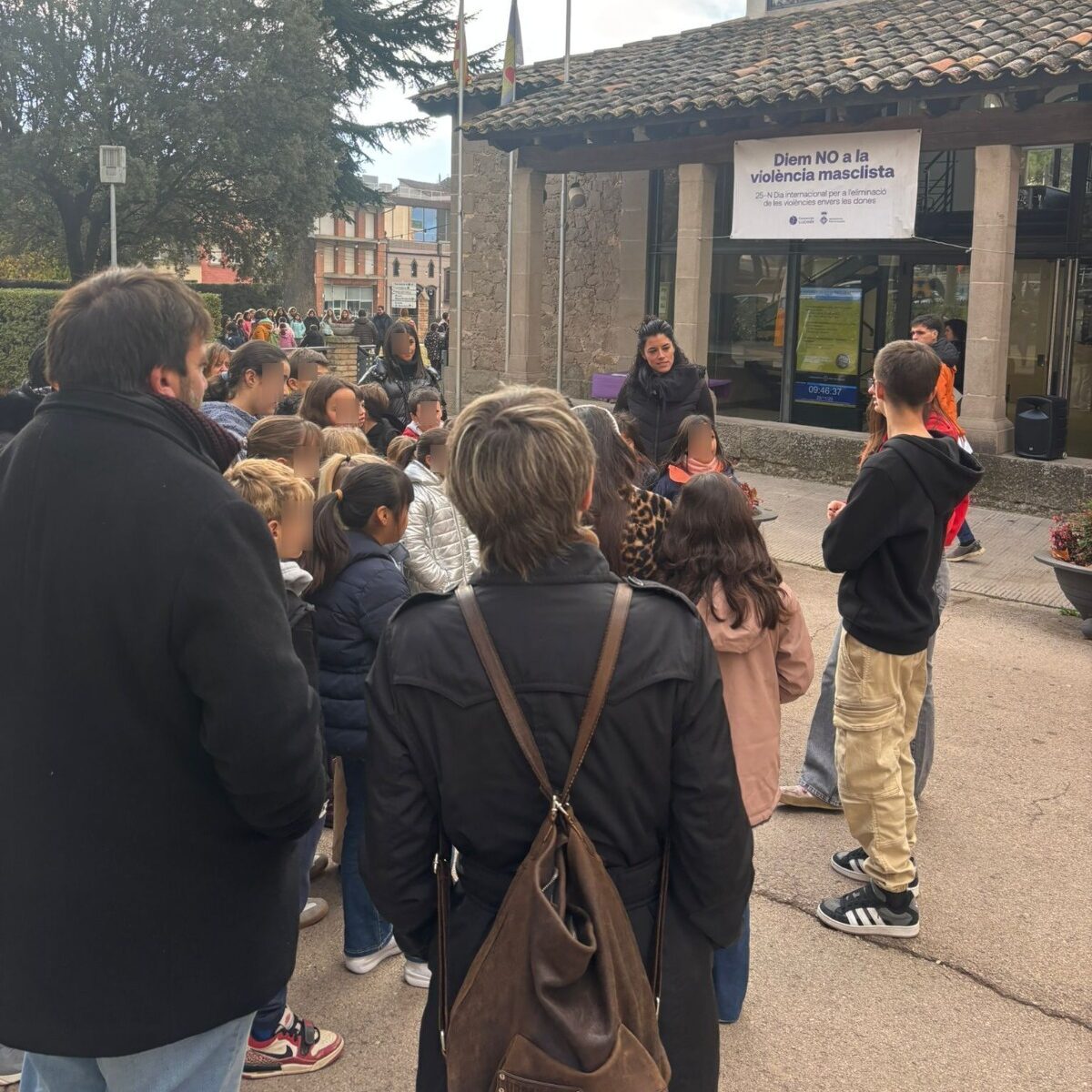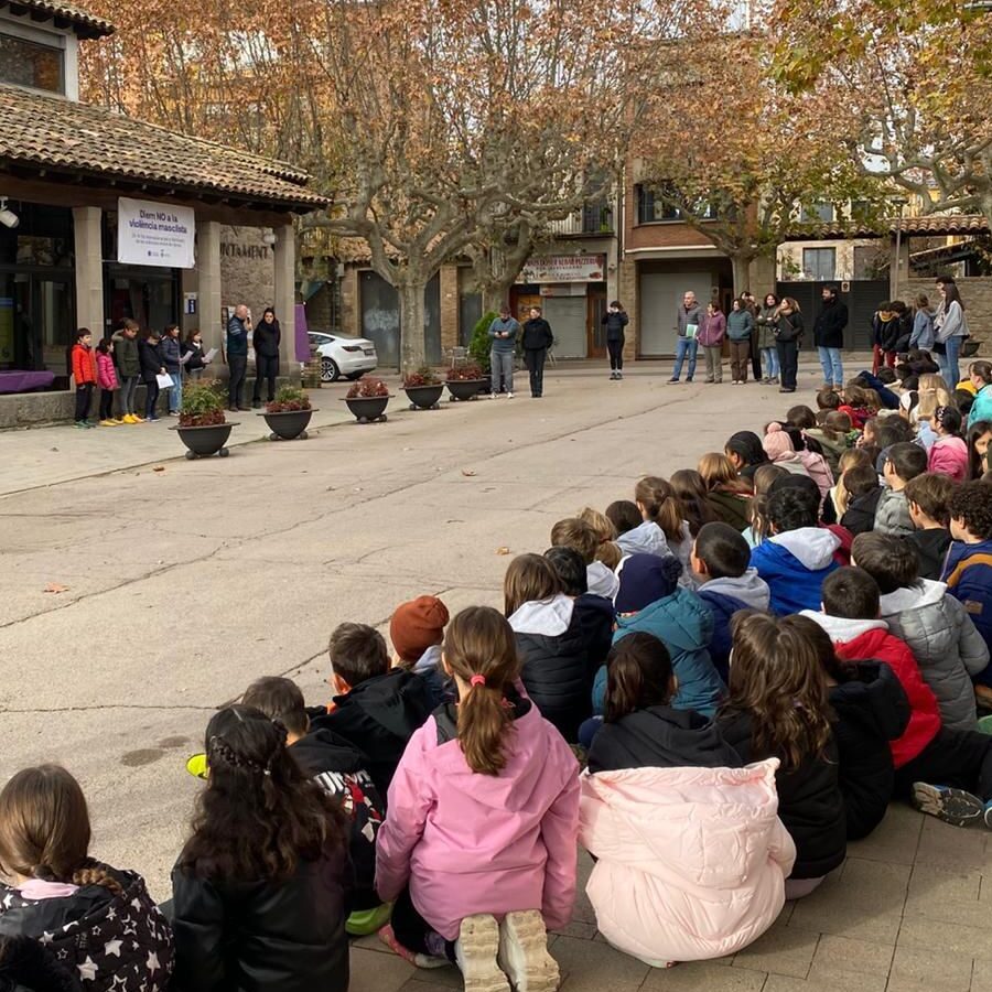 A continuació, els alumnes de l’Institut van compartir amb els infants de les escoles el treball de reflexió dut a terme durant els dies previs, presentant missatges i materials que apel·len a la igualtat, al respecte mutu i a la necessitat de construir relacions lliures de violències.